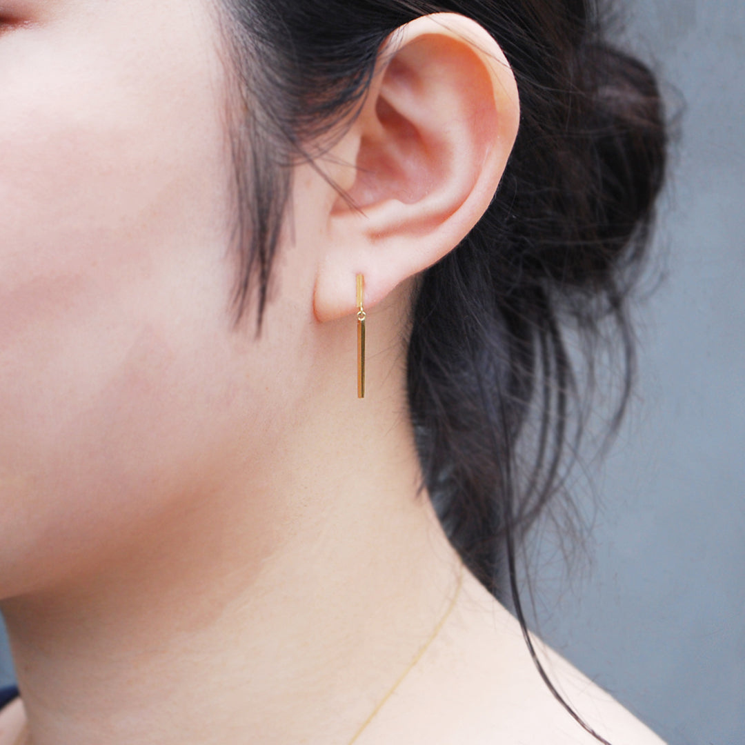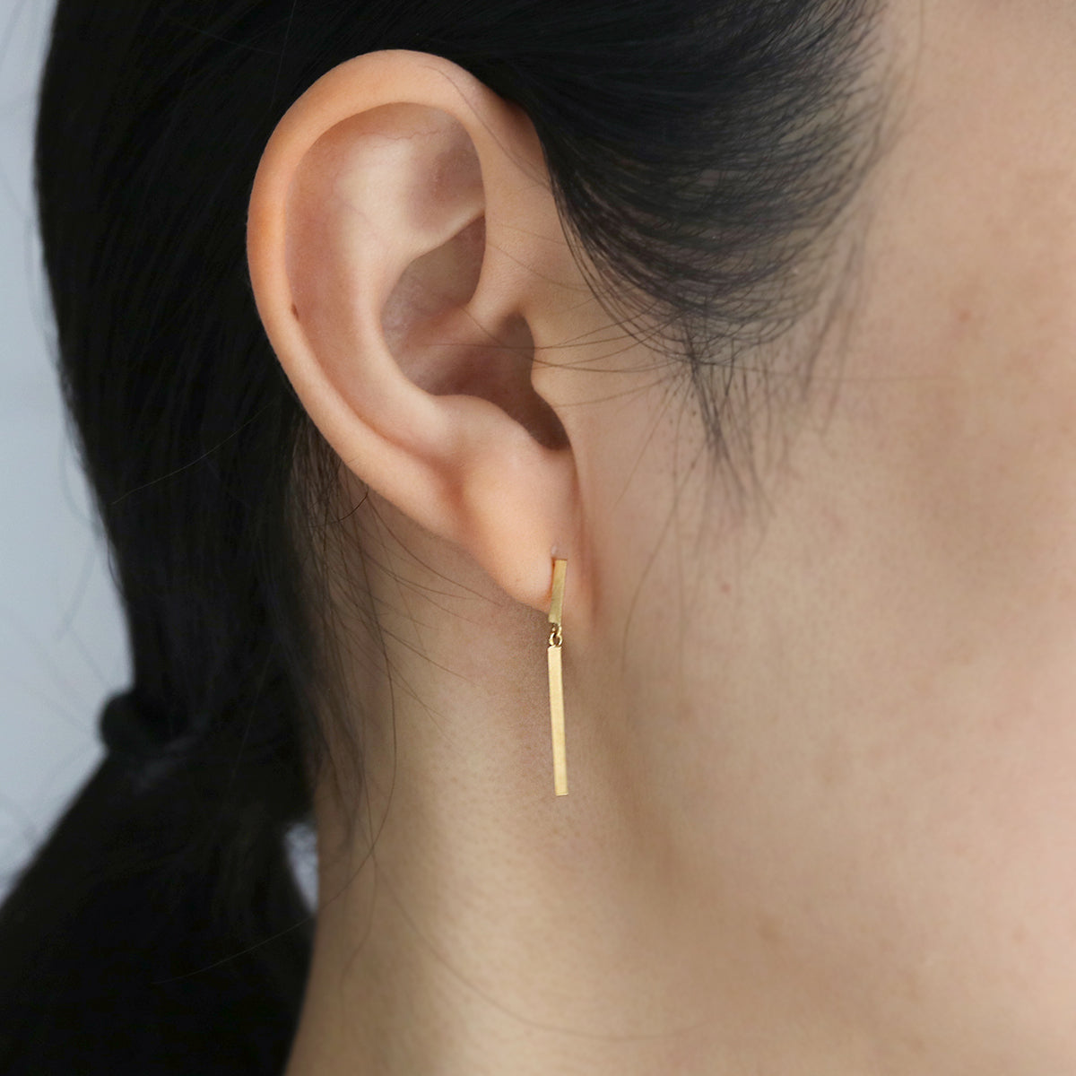 動くたびに耳元できらめき、繊細な光を放ちます。マットとポリッシュの異なる仕上げを施された三角形のバーが、揺れるたびにさまざまな表情を見せてくれます。